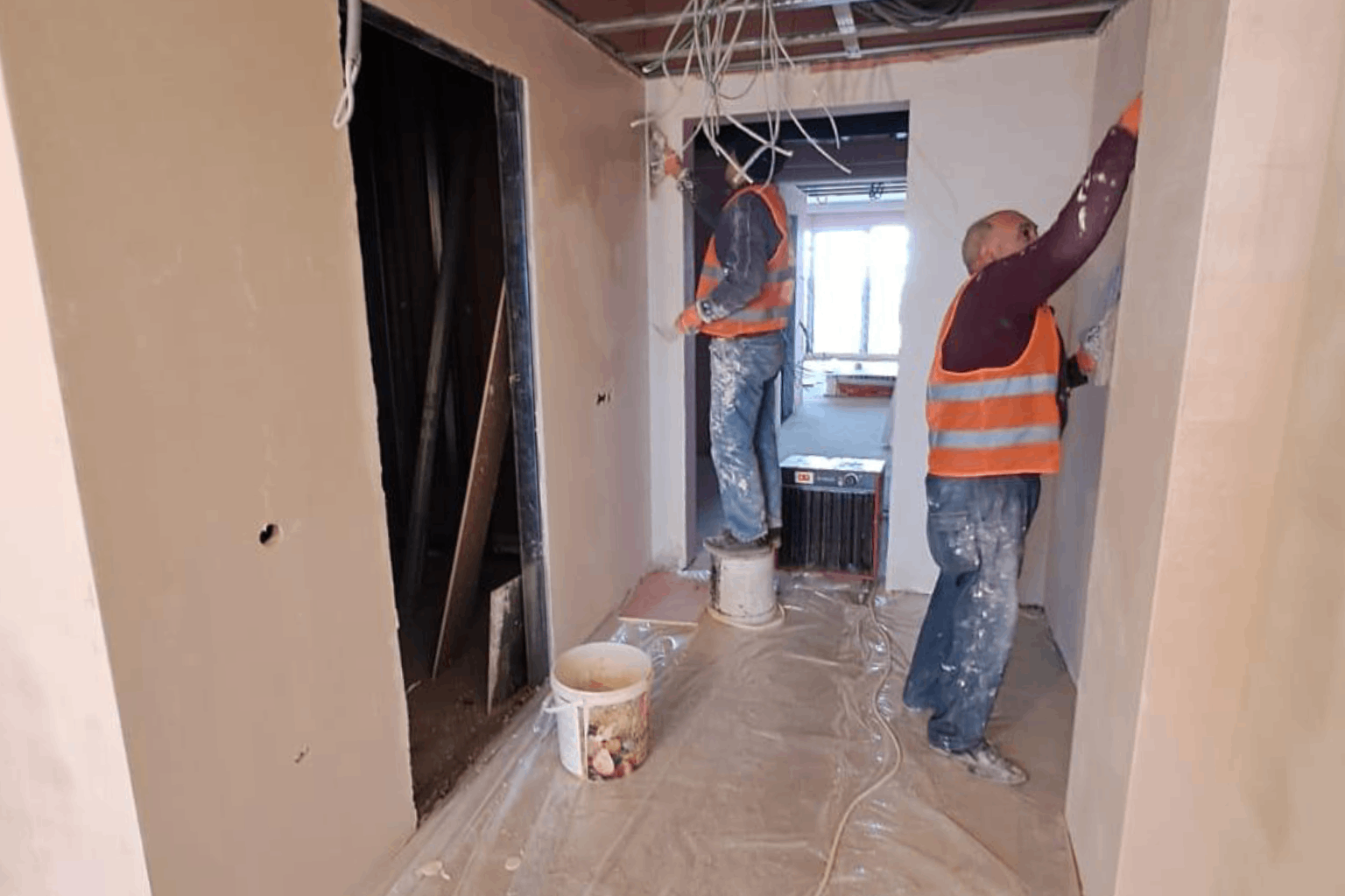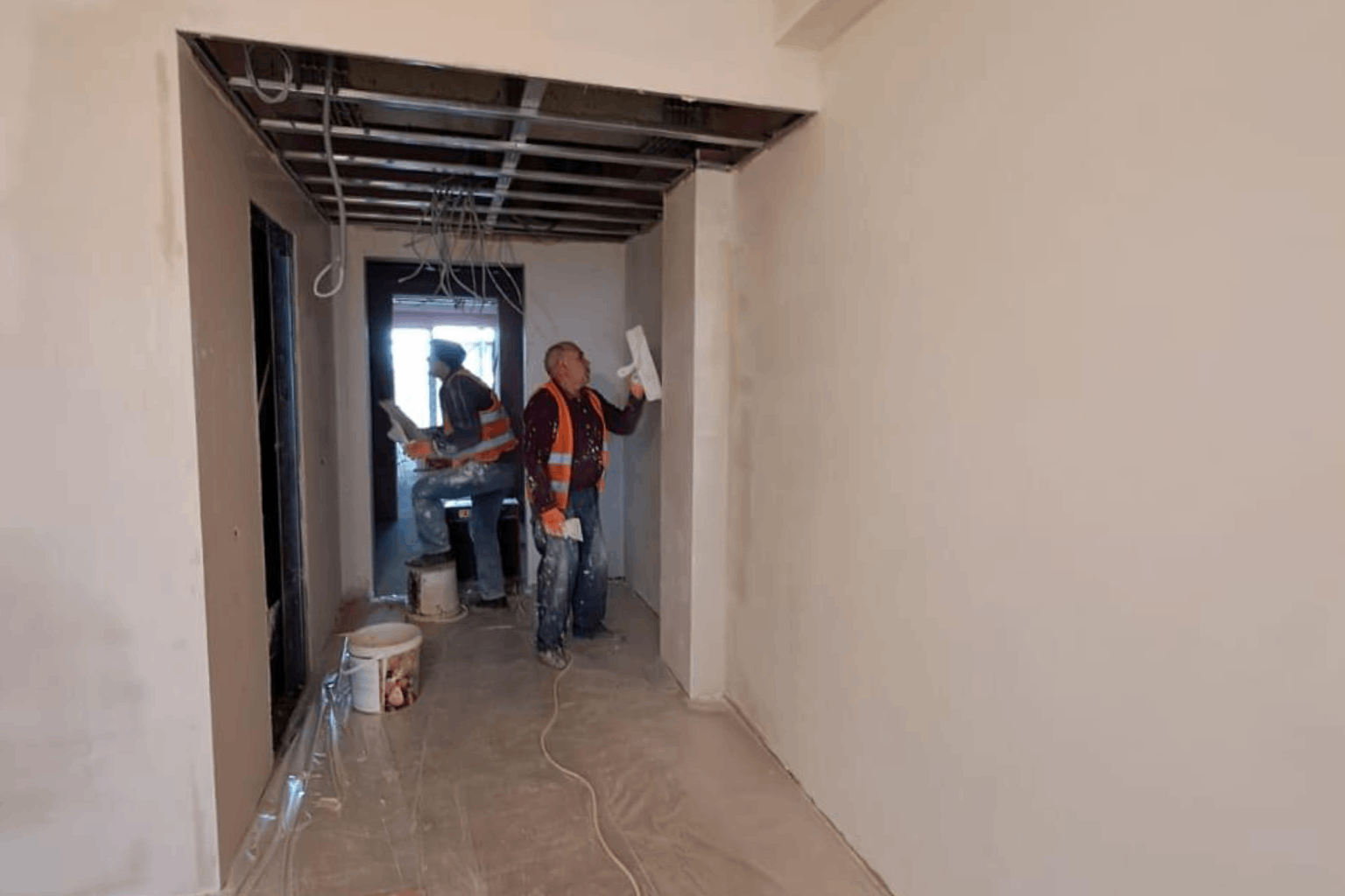 Installation of ceramic tiles and porcelain slabs in bathrooms, corridors, and other areas