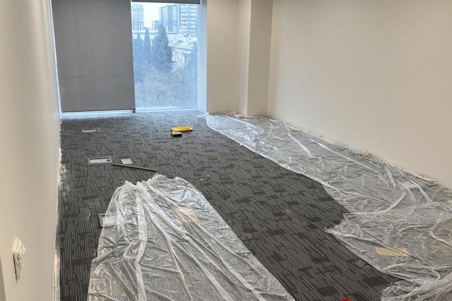Raised floor systems were installed in office areas and technical rooms, allowing easy access to cable routes and utility lines. Durable carpet tiles were laid on top to provide comfort, acoustic performance, and a clean appearance.