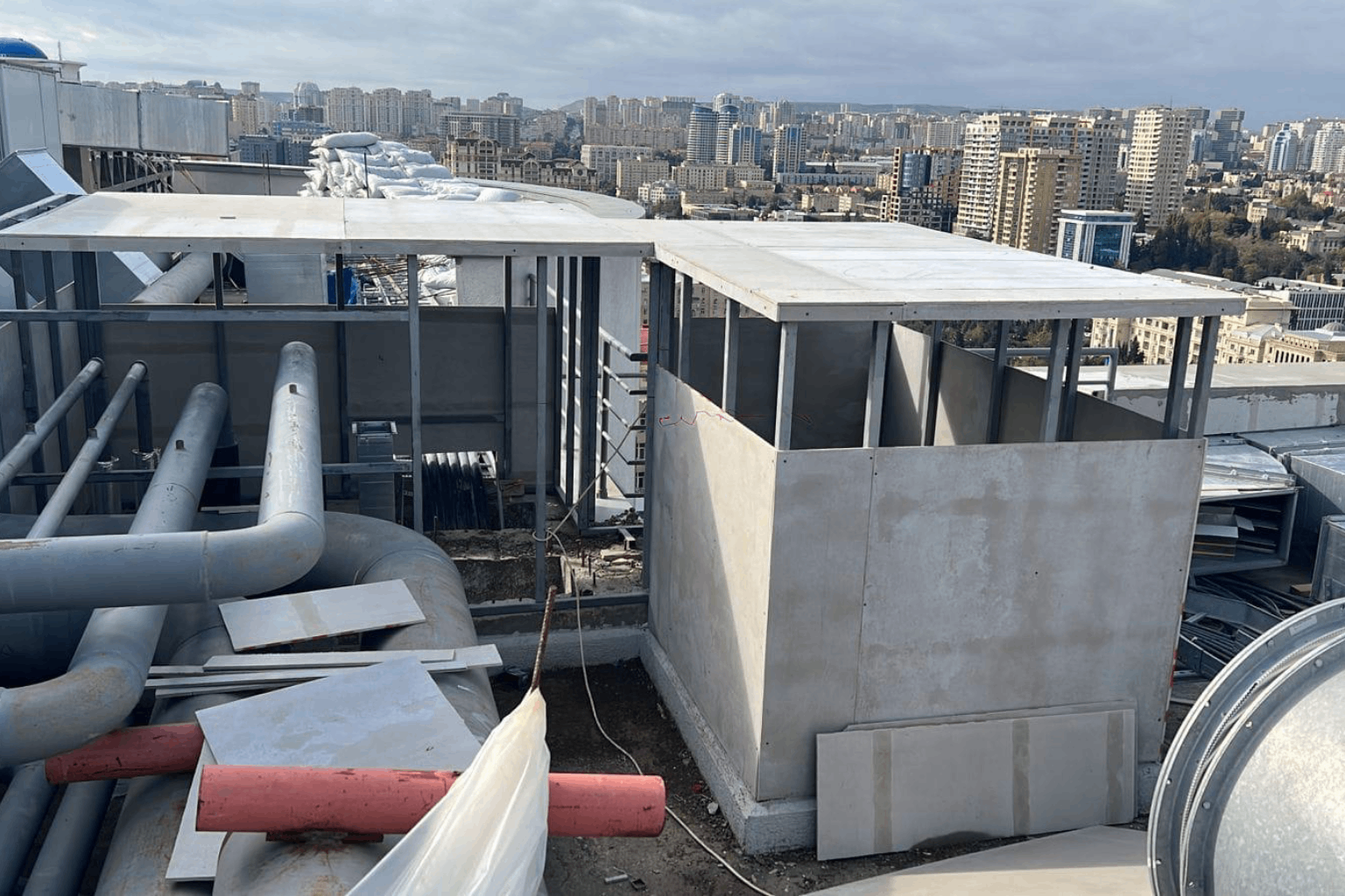 Concrete works were carried out on the rooftop to form the load-bearing surface and prepare for waterproofing. These works ensured long-term resistance to weather conditions and structural safety.
